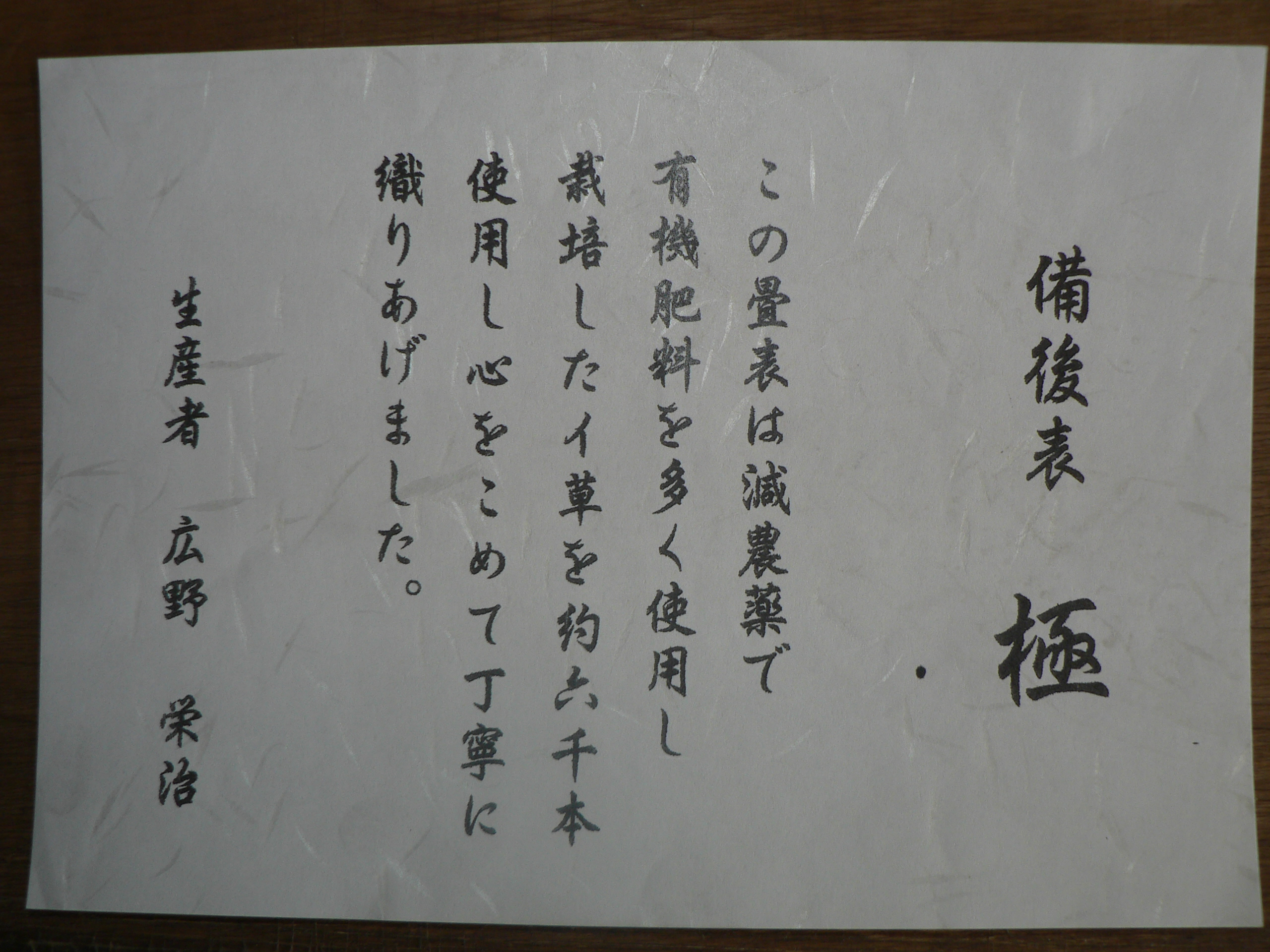 <長く美しいイ草で作った高級品(特級品)>